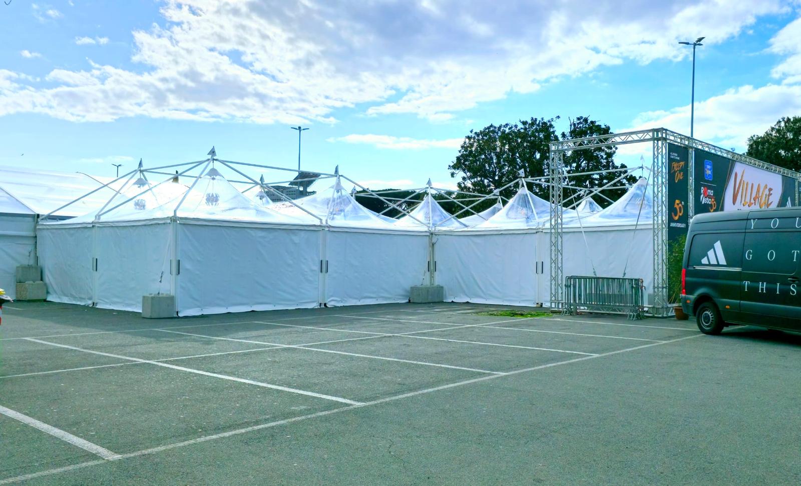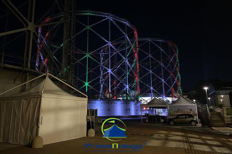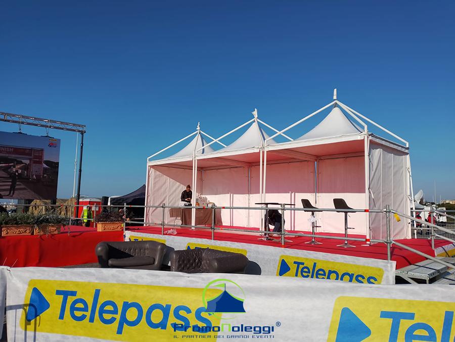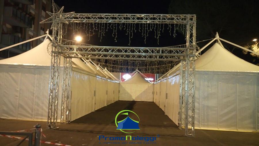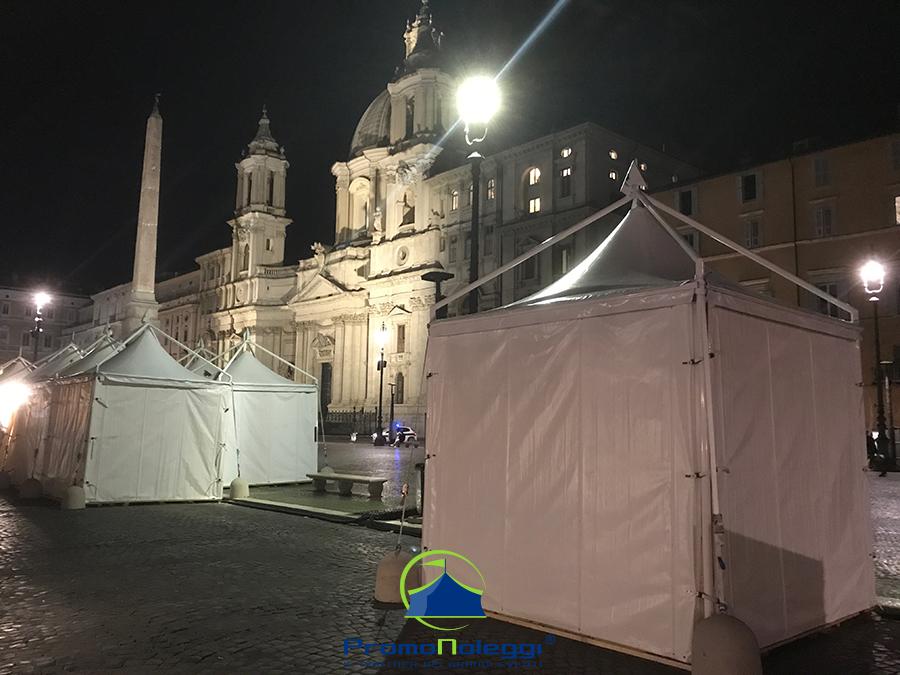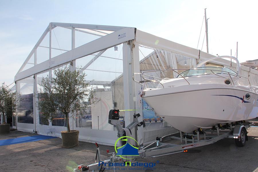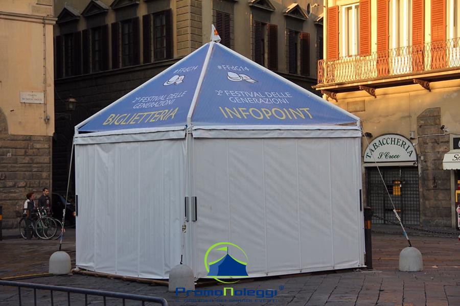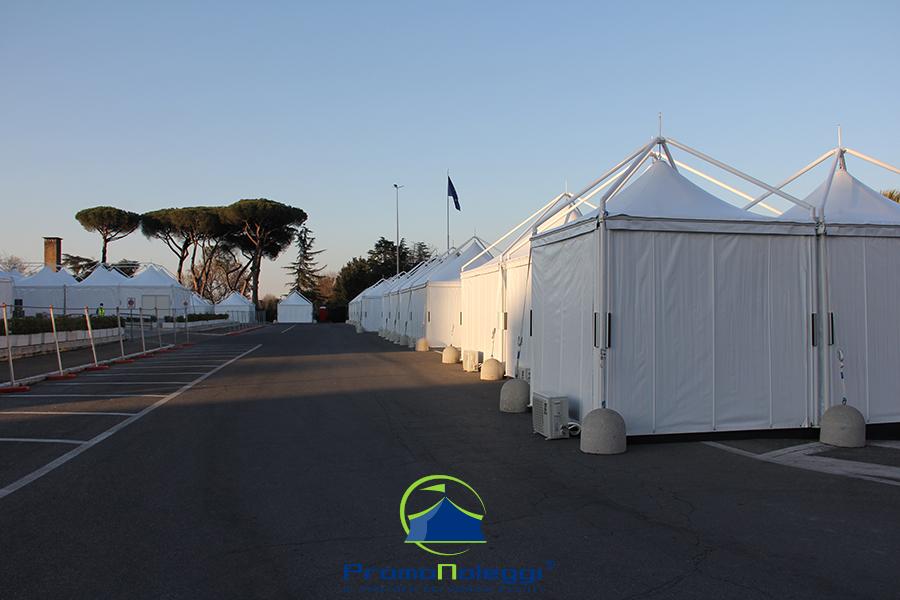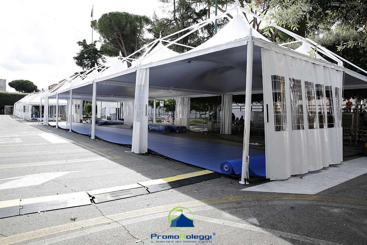 Tutti i moduli standard a noleggio sono realizzati con telaio in alluminio anodizzato e la copertura e i teli laterali in tessuto PVC ignifugo. E’ possibile richiedere la versione con teli scorrevoli laterali, con pannellatura rigida trasparente o senza chiusura.