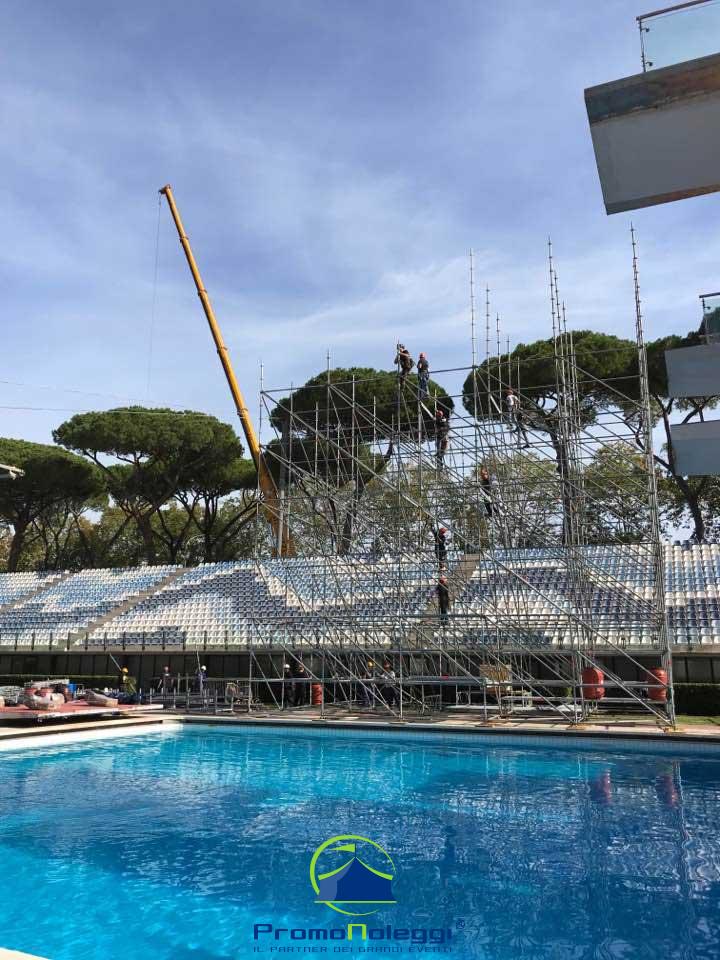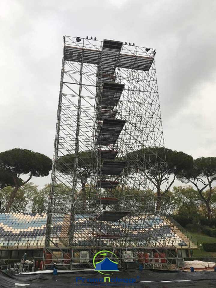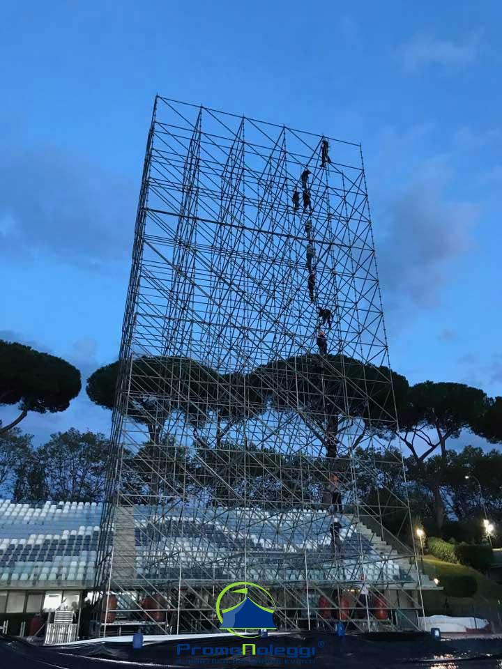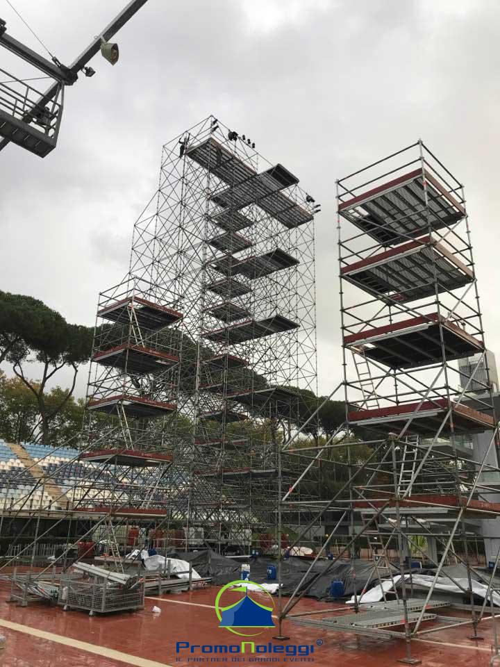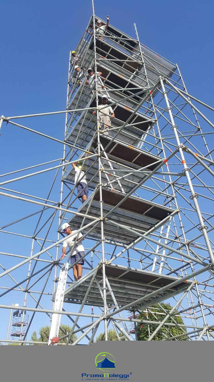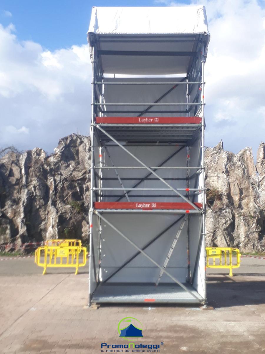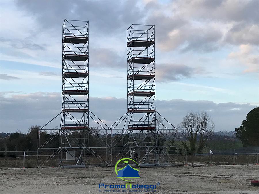 PromoNoleggi offre ai suoi clienti il servizio di progettazione, noleggio e installazione di portali, torri, tribune e palchi realizzati con il sistema Layher, il meglio delle strutture in multidirezionale sul mercato.