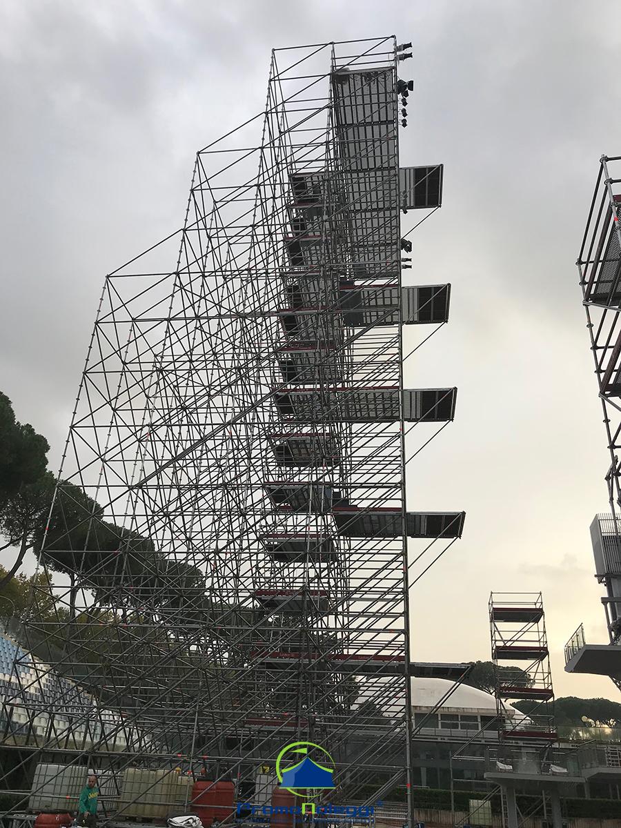 Le torri Layher sono utilizzate spesso nel mondo dello spettacolo e per le grandi manifestazioni sportive all’aperto in cui occorre l’installazione di impianti audio, multimediali e illuminotecnici ad alta quota in totale sicurezza e stabilità anche in condizioni di terreno non facili.