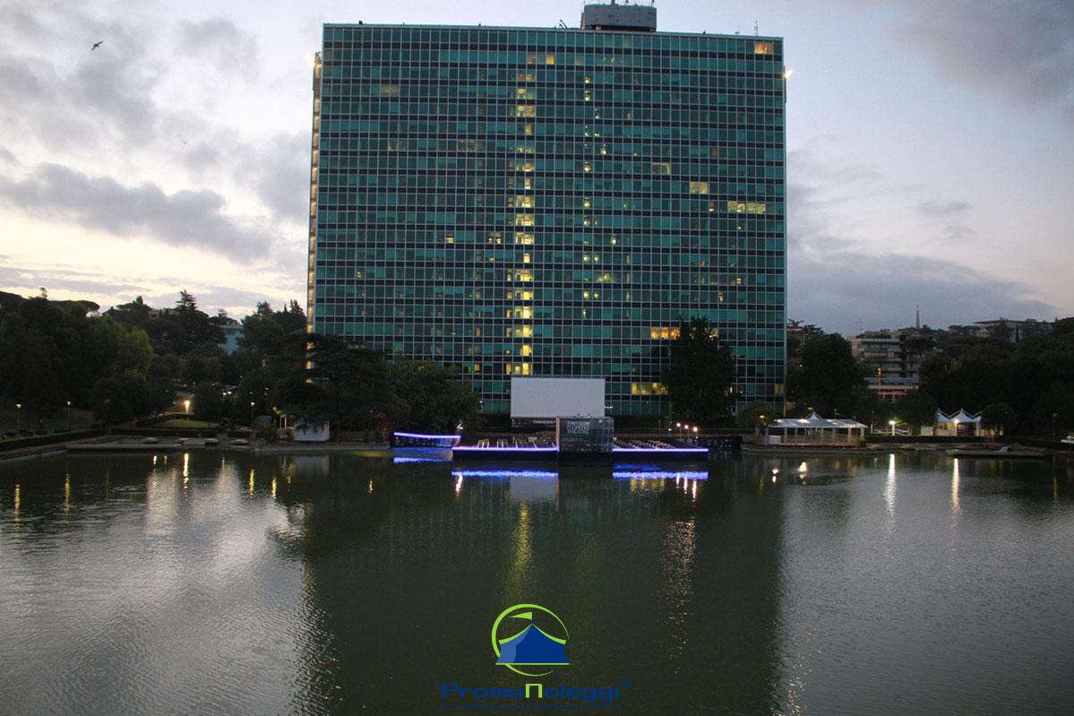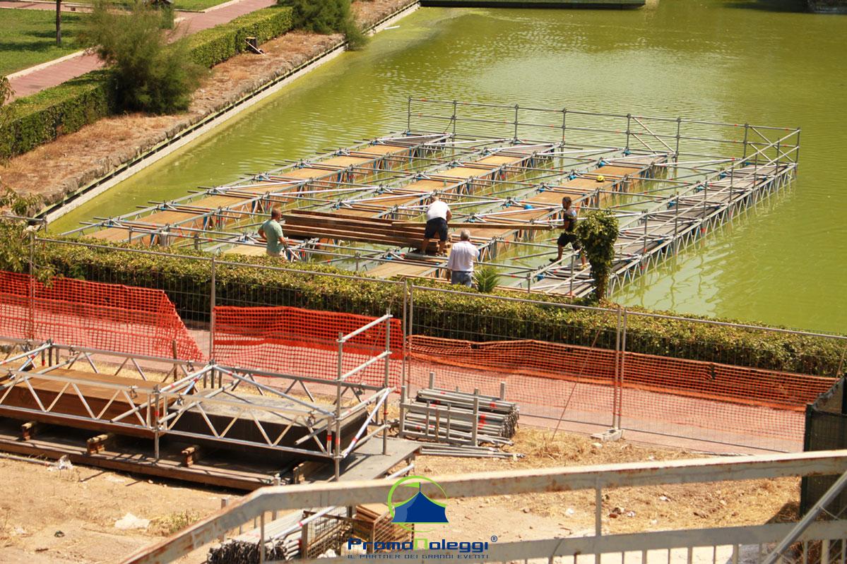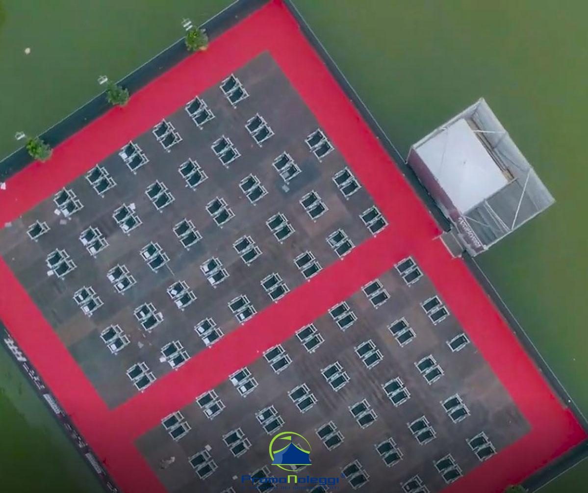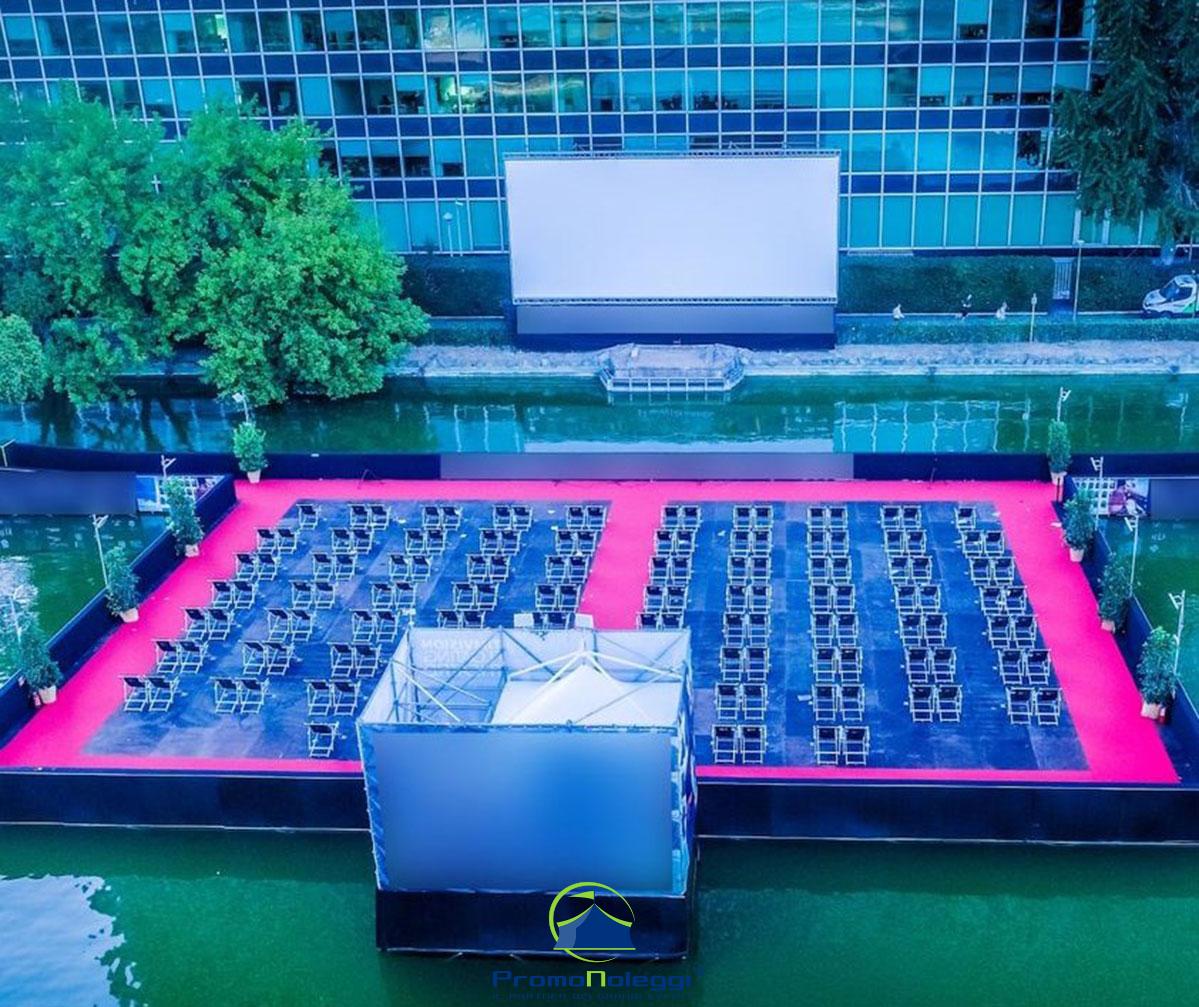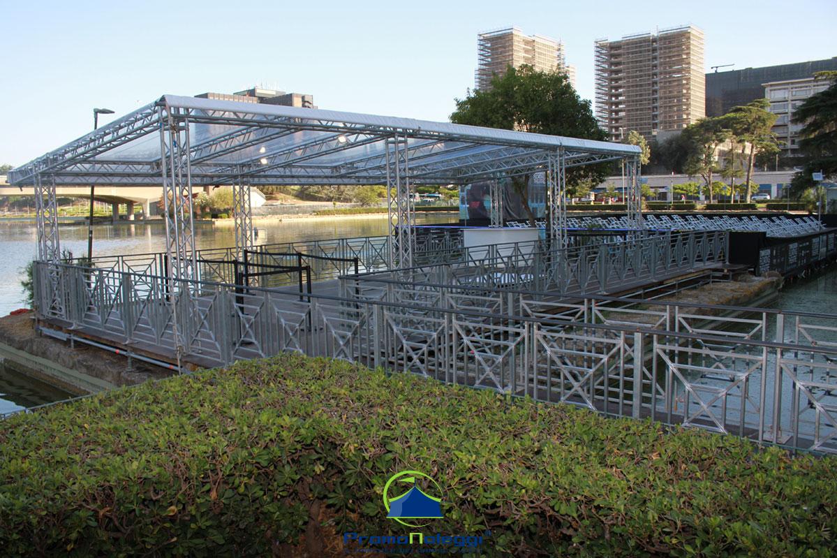 Progettato e realizzato per diverse edizioni di una manifestazione dedicata al cinema, il palco fluttuante è una Struttura Speciale calpestabile che galleggia sull’acqua. In grado di ospitare un vasto pubblico in totale sicurezza, è la conferma e la garanzia della nostra esperienza nel trovare la soluzione migliore per i grandi eventi dei nostri clienti.