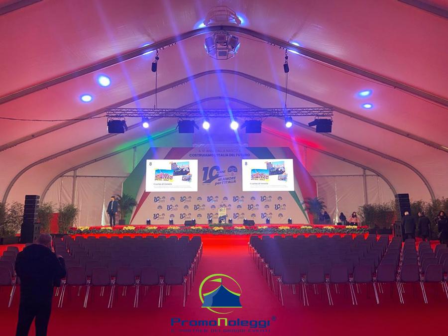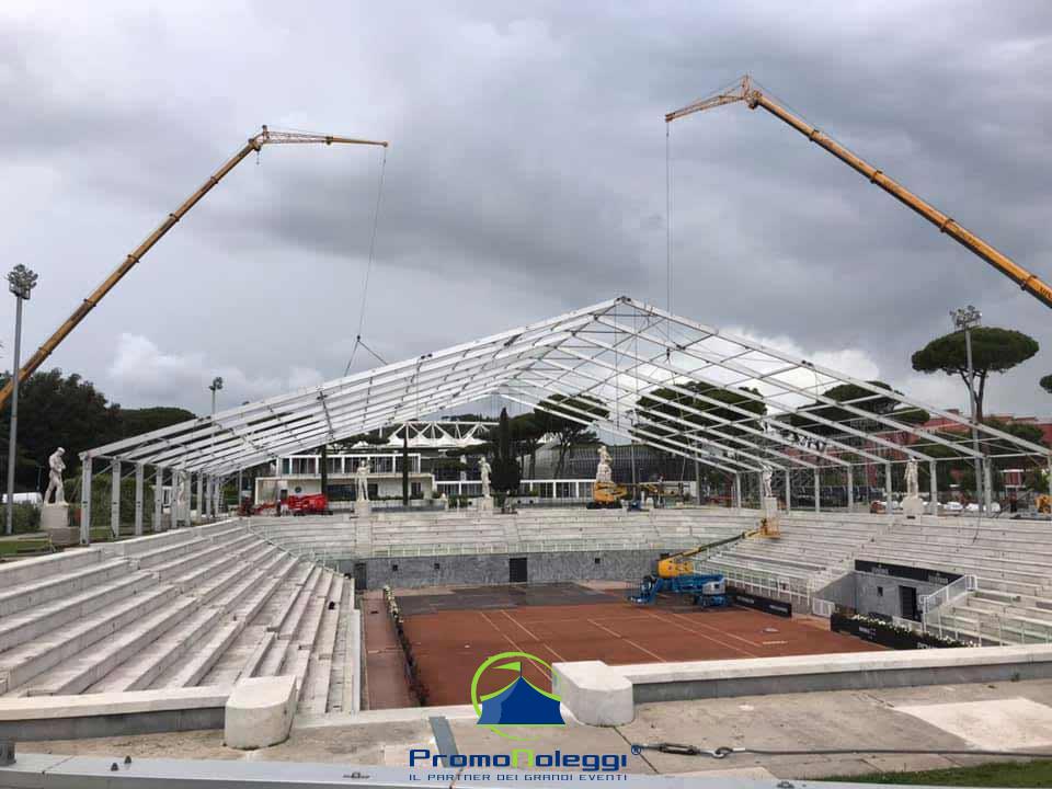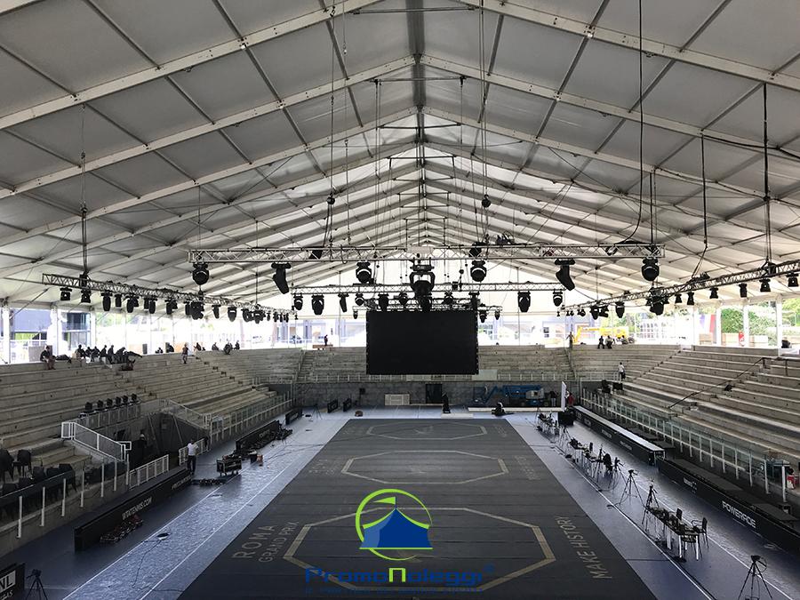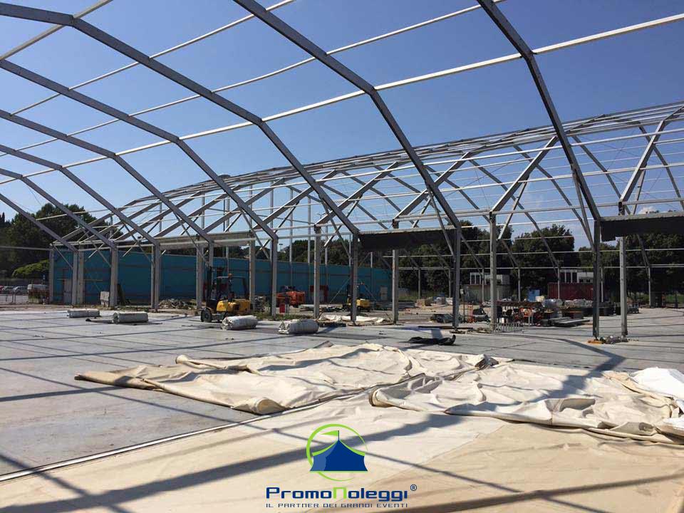 Le nostre tendostrutture realizzate in alluminio anodizzato sono stabili e sicure grazie alle giunzioni in acciaio e all’accurata installazione su qualsiasi tipo di terreno. I teli di copertura sono ignifughi, resistenti alle condizioni meteo e completamente personalizzabili con grafica, varianti colore e trasparenza dei teli.